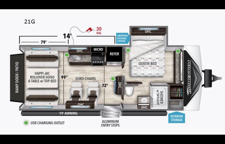 Mileage and generator hours that are included in a rental vary by listing. You can view the nightly mileage and generator hours that are included when renting this RV, as well as fees for excess mileage and generator usage, in the Rates and Availability section.