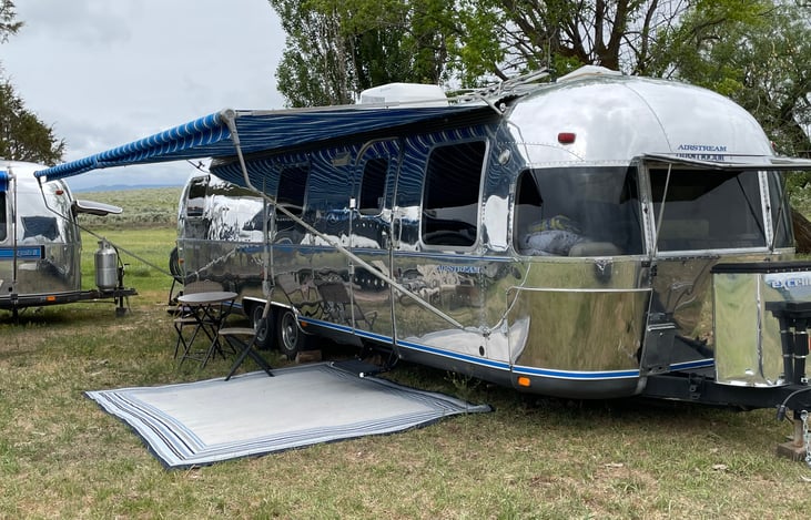 Our 1990 Excella is a 32' vintage restored Airstream offering very comfortable interior and exterior spaces for your camping experience.