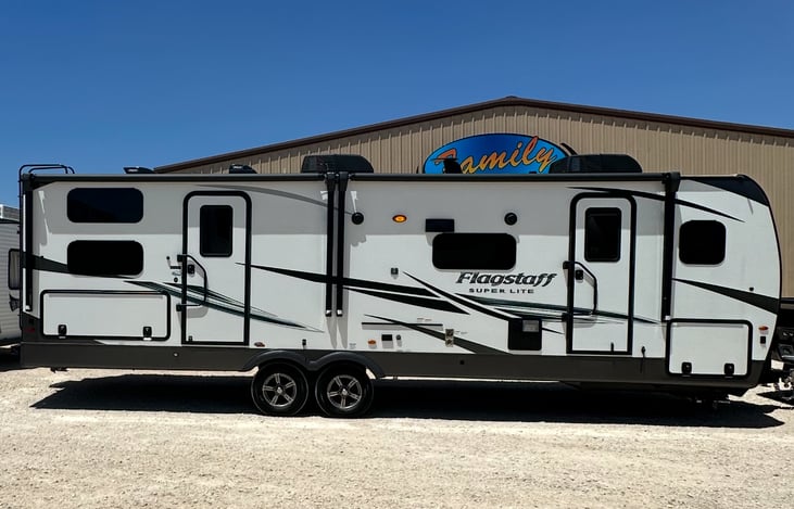 Experience the outdoors in comfort and style with our 2022 Forest River Flagstaff Super Lite 27BHSS! This RV features modern amenities, including a full kitchen with solid-surface countertops, cozy sleeping arrangements for up to 8, a spacious bathroom, and a private master bedroom.