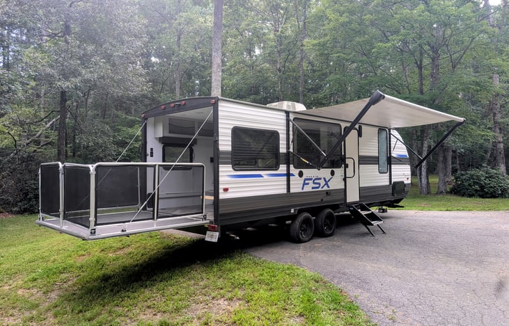 Step into a new realm of camping with our 2021 Forest River Salem FSX 260 RT. This toy hauler is built for those who want to do more than just sit around a campfire. Inside you'll find modern and cozy accommodations with a large and open galley, nice bathroom and a cozy bedroom with a comfortable Queen bed in a back. The highlight however is undoubtedly its robust rear deck!
