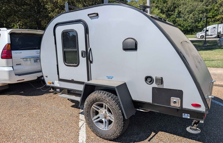 Want to go camping but not in a tent? This is a small and light weight camper that is easy to pull. It has ac, heater, water tank and a 270 degree awning. It has a bed that will sleep two easily, I will eventually put a roof top tent for more people. No bedding other than a fitted sheet so provide your own or a sleeping bag