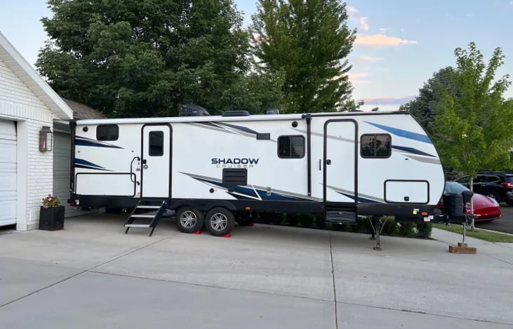 Discover the perfect blend of comfort and adventure with the Crrc Shadow Cruiser. This spacious travel trailer is ideal for families and groups, featuring a cozy bunkhouse, a well-equipped kitchen, and a comfortable living area. Enjoy outdoor cooking with the exterior kitchen and relax under the large awning.
