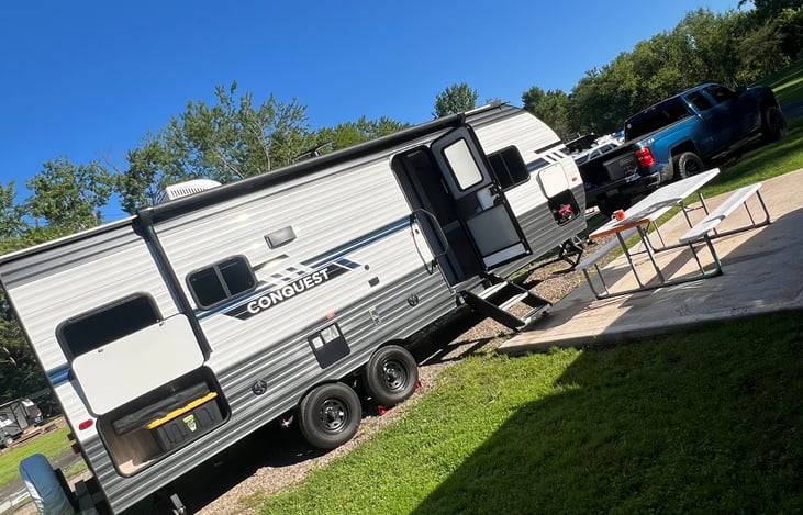 About UsHey there! We’re Adam and Victoria Gribble, a husband-and-wife duo based in Pennsylvania who love camping, campfires, and creating memorable getaways for others.When we’re not out exploring, Adam works as a firefighter, and Victoria keeps our world running smoothly behind the scenes. We know how valuable time away can be, and we’ve set up our Conquest camper to make your trip as easy, rela...
