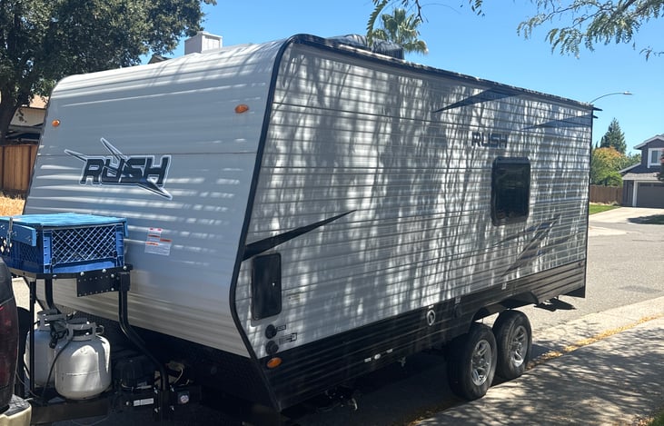 Rent out our lovely rush toy hauler, it’s a small but great trailer to explore in. This trailer sleeps 2 but many more can fit in when cooking or just hanging out. Our trailer is ready to take you to your next adventure