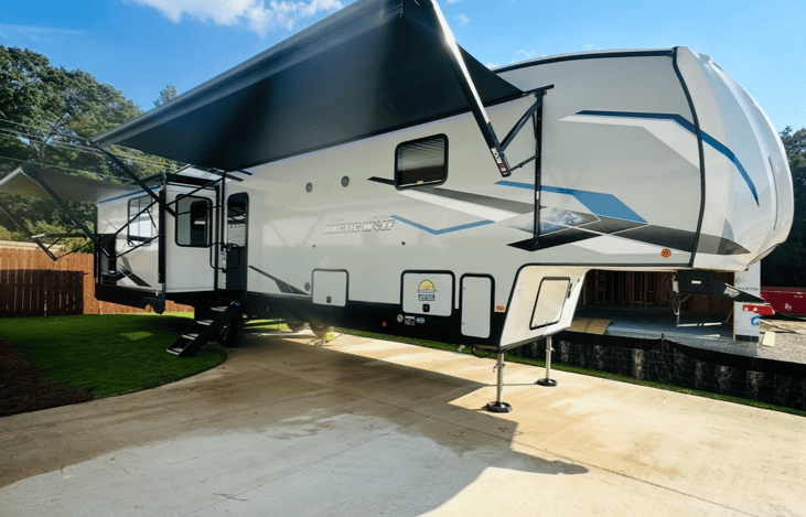 From the hosting the ultimate tailgate to a relaxing family getaway, this camper has everything you need to make your weekend getaway dreams come true! You pick the spot, we bring it to you! This spacious fifth wheel camper is the perfect mix of luxury and the great outdoors and has room to bring the whole family along. It is fully stocked and ready to go, just pack your bags, adventure awaits!