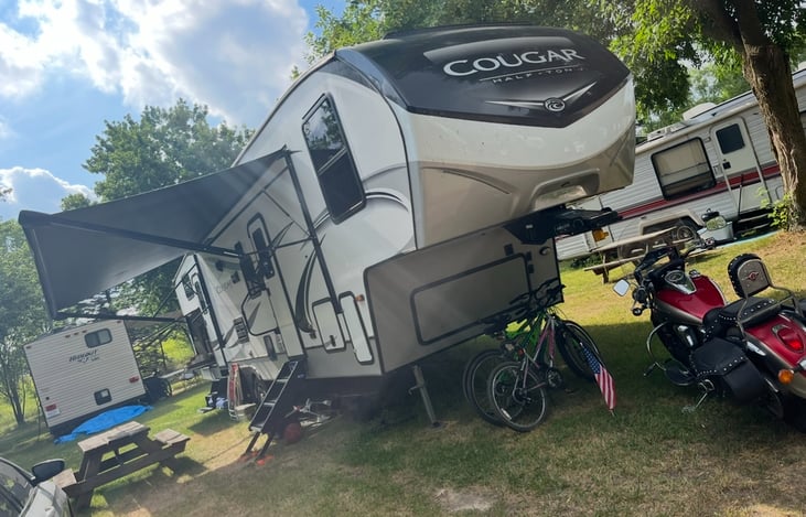 Great family get away. Camper sleeps up to 8 people comfortably. 1 full bath and half bath in the master bedroom. Outdoor shower. Outdoor kitchen with grill and refrigerator outside. Electric fireplace for the cool evenings watching a family movie on the Roku smart tv.