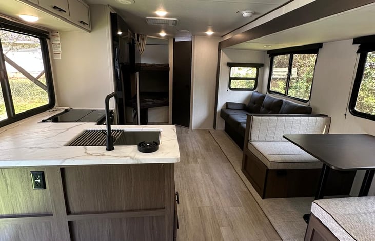 Looking for the perfect RV for your next adventure? Our Prime Time Avenger is spacious, modern, and packed with features to make your trip unforgettable. With room for up to 8 guests, this trailer is ideal for family vacations, group getaways, or festival weekends.
