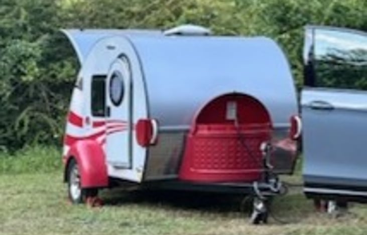 Ok, bicycle may be a stretch but I can pull this across my drive way by myself. Amazingly cute and totally towable 2016 T@G teardrop trailer. This is one of the smallest ( 13.7 ft), but best made units there is. all the wood surfaces are actually wood (rare these days), and everything works like a charm.