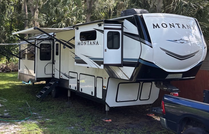 Hi there! We’d love to share our beautiful 2022 Keystone Montana with you. Perfect for family trips, couple getaways, or just some time to relax, this RV is spacious, comfortable, and fully stocked for your stay.