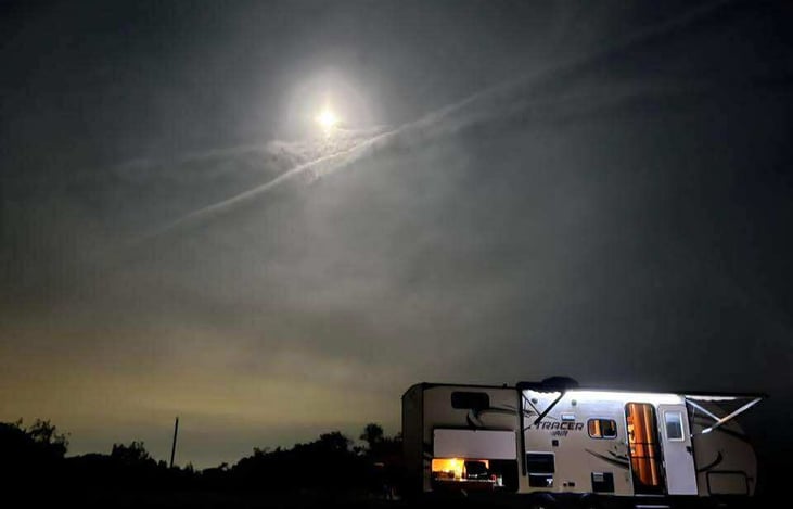 Sleep 7 comfortably, full size shower, microwave refrigerator and freezer works on electric or propane, dual sink, stove, coffee maker, outdoor kitchen with extra refrigerator and counterspace, central ac each bed gets a vent, Bluetooth stereo with indoor and outdoor speakers, awning with led lighting, roku TV, dishes and silverware included, plenty of board games, optional generator, spacy with a