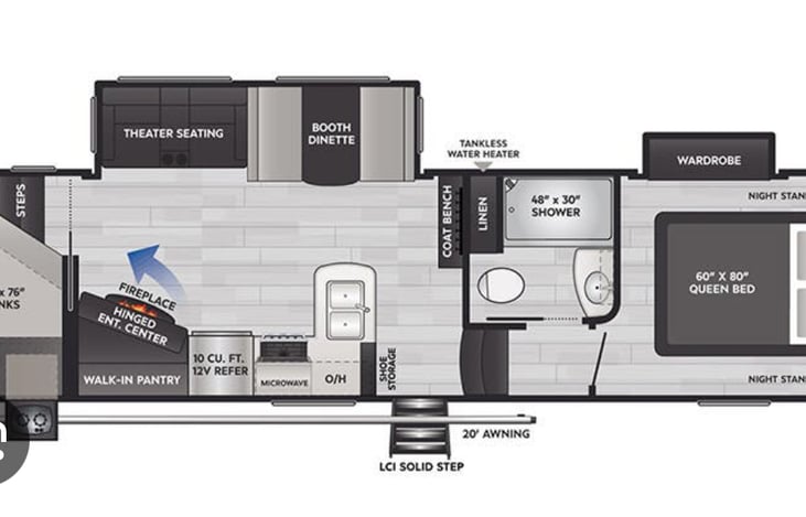 Mileage and generator hours that are included in a rental vary by listing. You can view the nightly mileage and generator hours that are included when renting this RV, as well as fees for excess mileage and generator usage, in the Rates and Availability section.