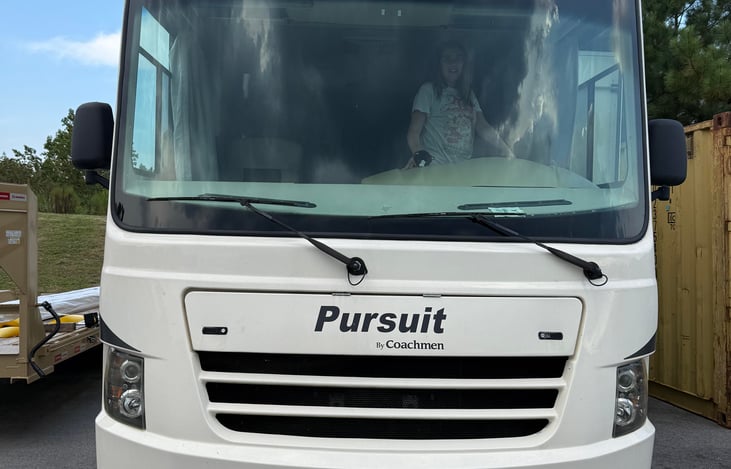 Strong, spacious, and built for good times, Duke is a 2019 Coachmen Pursuit Class A motorhome that brings a little swagger to the road. With warm wood finishes and a driver’s cockpit that feels more like a spaceship than a steering wheel, this RV was made for bold adventures with family or friends.