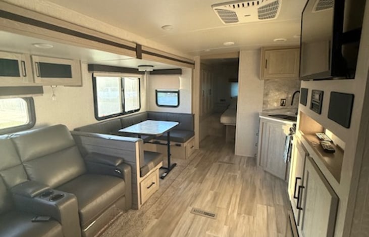 Great trailer for a week long or quick weekend get away! Spacious layout with fireplace! Bunk beds, a kitchenette that turns into a bed. Master bedroom with TV.