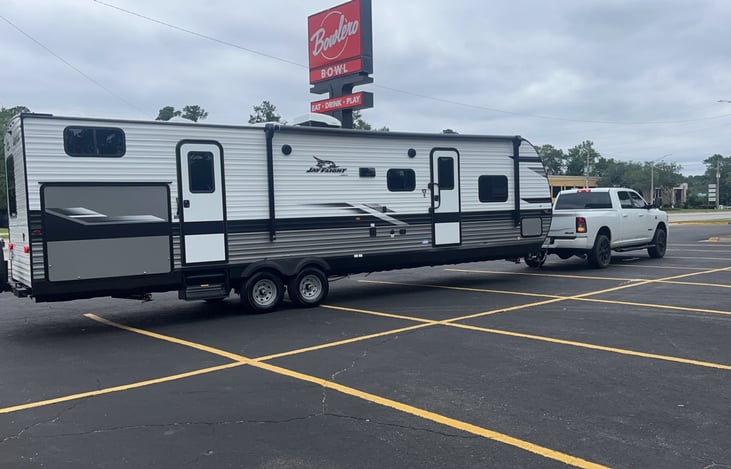 Amazing outdoor kitchen for outside grilling and sleeps up to 10 . Bring your dog or cat and enjoy the two separate bedrooms for extra space. I would prefer to deliver camper for you anywhere from Jacksonville Florida area to Orlando area, thank you for understanding!
