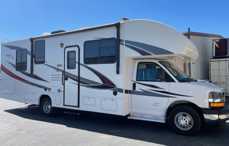 This 2019 Jayco Redhawk SE 27N is a comfortable and easy-to-drive Class C motorhome perfect for family adventures, featuring a private queen bedroom, a bunk over the cab, and sleeping for up to 6. It's equipped with a full kitchen, private bathroom, and an electric awning for outdoor enjoyment.