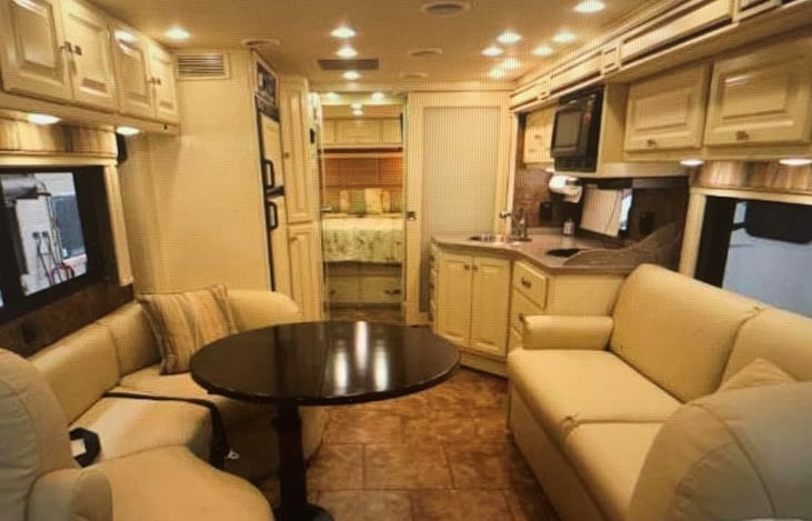 Hello fellow adventures! This is a great RV with all the comforts of home. The queen size bed is very comfortable. The dinette turns into a fairly comfy bed for 2 and the couch also converts to a bed. There are 2 air conditioning units and a heater. Shower and bathroom is great as well. I will deliver and set up to most locations in the Jacksonville area. This is a class A RV however t...
