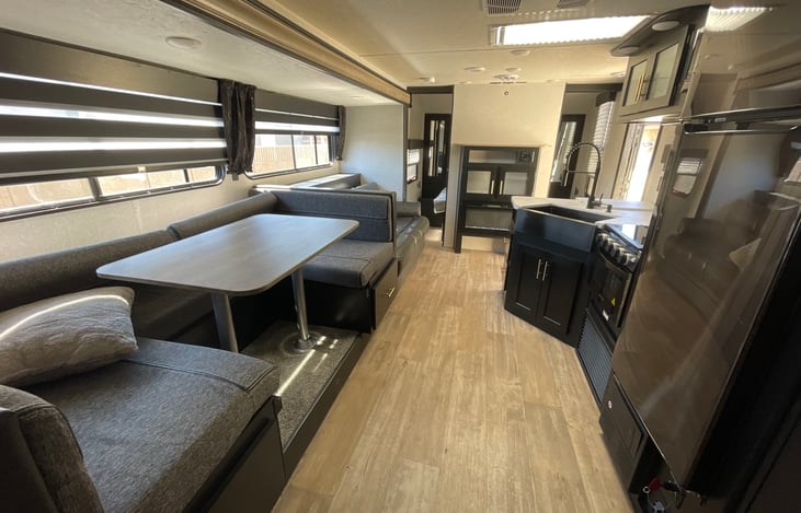 Enjoy all the comforts of home with a slide-out sofa, convertible dinette, and ample sleeping space for everyone.
