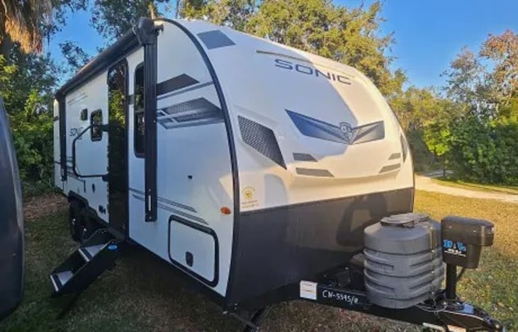 Hi everyone! I’m a 2025 Venture Sonic, and I’m the perfect mix of compact comfort and family-friendly adventure. I’ve got a queen-size Murphy bed up front that folds down over a cozy sofa, plus double bunks in the back and a dinette that turns into another bed—so I can sleep up to 8 happy campers!