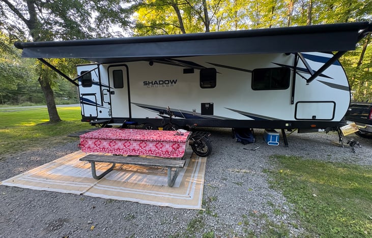 Treat yourself to a next-level camping experience in our 2023 Shadow Cruiser 260RBS compact enough to maneuver easily, yet packed with luxurious features. Relax in your own private bedroom with a queen bed, cook up fresh meals in the full kitchen, unwind on the comfortable theater seating or dining slide-out, and step outside under a 20-foot electric awning with LED lights.