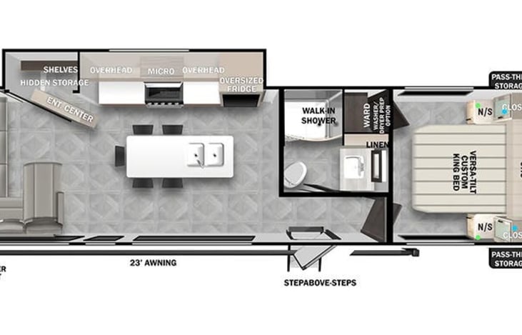 Mileage and generator hours that are included in a rental vary by listing. You can view the nightly mileage and generator hours that are included when renting this RV, as well as fees for excess mileage and generator usage, in the Rates and Availability section.