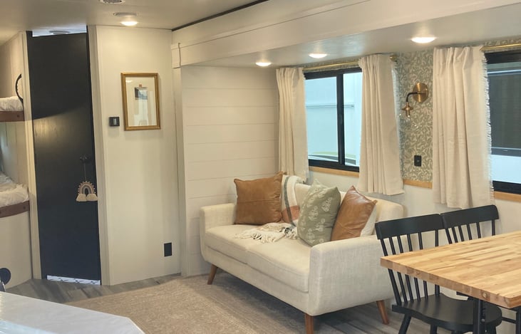 This is NOT your average camper so you can say good bye to the standard gloomy brown and say hello to Everly. The pictures say it all. BOHO décor with faux plants, wall art and lots of other extras.