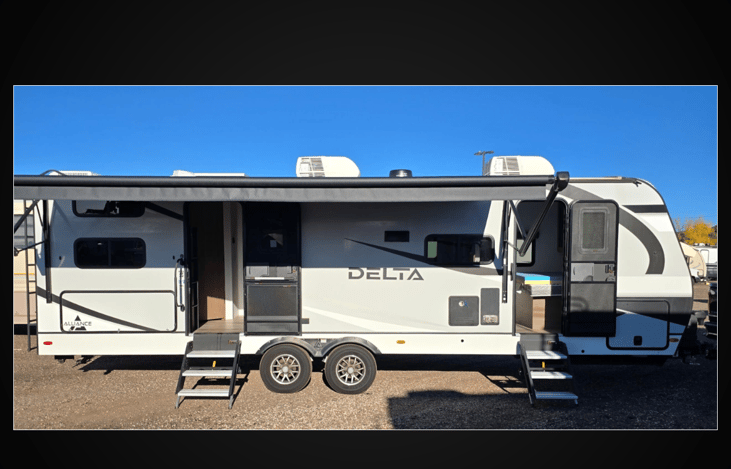 The Alliance RV Delta 281BH is a spacious travel trailer perfect for larger families or groups who enjoy traveling together. Key features include bunk beds in the rear, a U-shaped dinette for meals or extra sleeping, a private bedroom with easy access, an outdoor griddle for cooking, and dual entry doors for convenience.