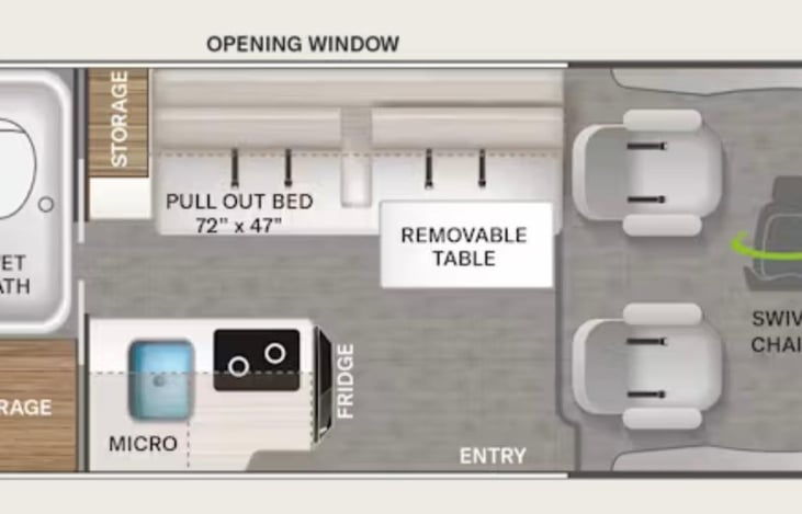 1. Spacious Interior: Step inside, and you'll be greeted by a spacious and thoughtfully designed living area that includes two swivel seats for you and guests.