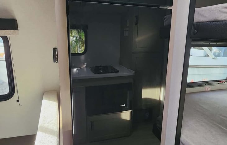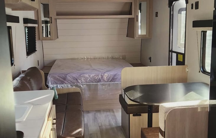 Make memories in our brand-new, simple-to-use RV, perfect for family adventures. This camper is easy to tow with a half-ton truck. You'll love that it sleeps up to 8 people with the large bunk beds, leaving plenty of space for the kids. It has an upgraded queen size be with a real mattress (for true comfort). The a/c keeps this simple camper nice and cold for this FL wearther.