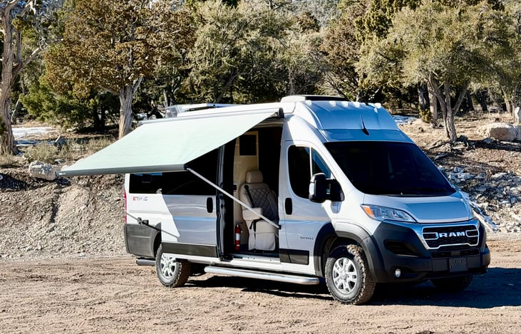 The Entegra Ethos 20D is a luxurious, compact Class B camper van built on the Ram ProMaster chassis, designed for versatile travel with premium features like a pop-top roof for extra sleeping, swivel cab seats, a full galley kitchen, and a wet bath, all managed by a Firefly touchscreen system and packed with safety tech for comfortable, off-grid capable adventures.