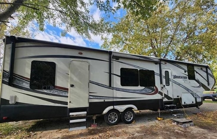 This 2016 Momentum 385TH is a beautiful Toy Hauler with all the features you need for fun during playtime and comfort during downtime.