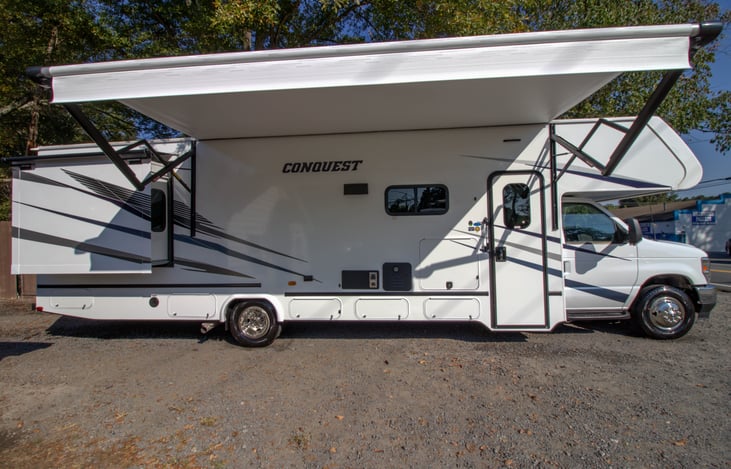 Set out to new destinations with this Conquest Class C 33FT gas motorhome to travel and stay in comfort!