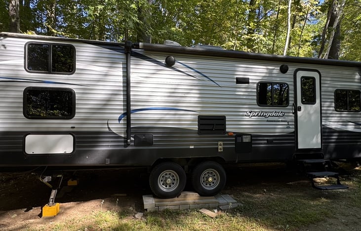 2017 Keystone Springdale Summerland Series. Front Queen bed, rear double bed bunk beds. Full Slide out with electronic leveling jacks make setting up a breeze. The camper has storage galore! 1/2-ton towable camper with room for the family and friends!
