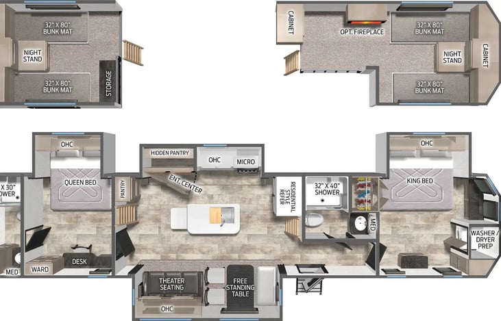 Lofts: Often feature access ladders and are ideal for kids/guests or uses like an office/storage nook.
