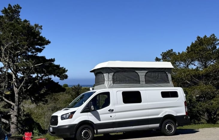 Hit the road in our amazing Colorado Campervan converted Ford Transit 250. It is very easy to drive and includes an automatic pop-top for additional sleeping space. There is a kitchen with a refrigerator/freezer, two gas burners, a hot plate, a large gray water tank, and plenty of storage space. It has a ceiling fan to keep you cool in the summer, and a gas heater to stay warm in the winter.