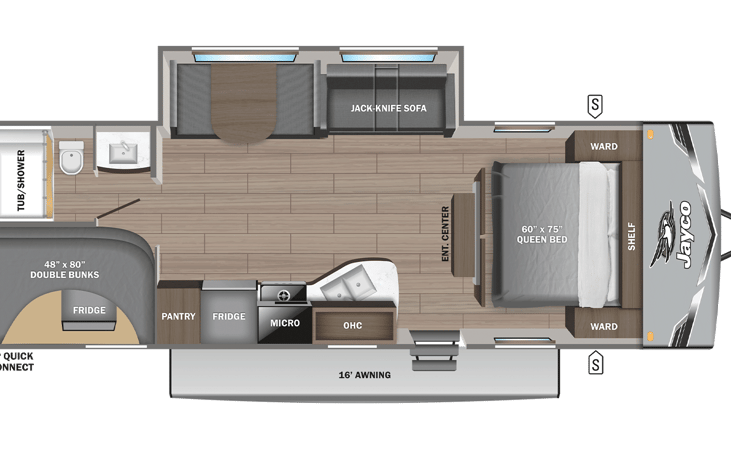 Make great family memories in this clean, comfortable, and easy-to-use travel trailer. It features a private front queen bedroom for parents, rear double bunk beds the kids will love, plus a dinette and couch that both convert into additional beds—perfect for larger families or extra guests.
