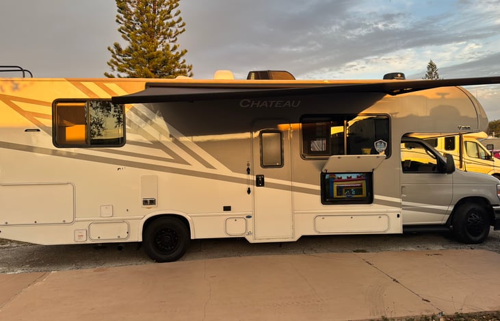 My RV is the best on the market! Fully equipped brand new amazingly modern 2026 Chateau C Class motor coach. This beauty has a sectioned off bedroom, full kitchen with a stove, refrigerator, freezer, oven and microwave, a spacious shower, reclining theater seats, interior...