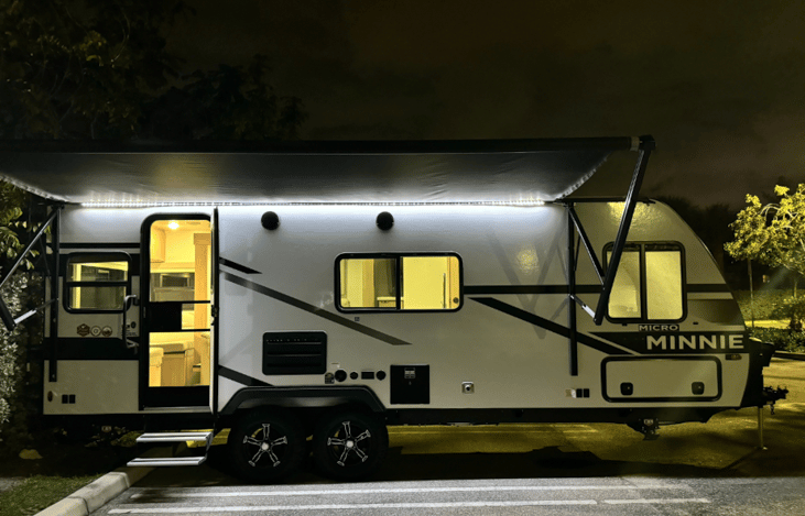 The 2024 Winnebago Micro Minnie 2225RL is a 25.42-foot travel trailer designed for couples or small families. This compact yet well-equipped trailer features one slide-out and weighs 4,651 pounds, making it relatively easy to tow.