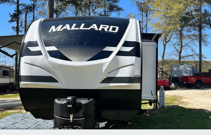Excellent condition, 2022- Heartland Mallard M210RB, sleeps four comfortably, upgraded 12" king-size memory foam mattress, leather sleeper sofa, blackout shades, Propane/electric refrigerator/freezer, Microwave, A/C and heating, Keurig coffee maker, slide-out awning, LED lit awning, WiFi router, 32" LED TV, USB connections, ample storage space throughout, Bluetooth surround audio with outdoor spea
