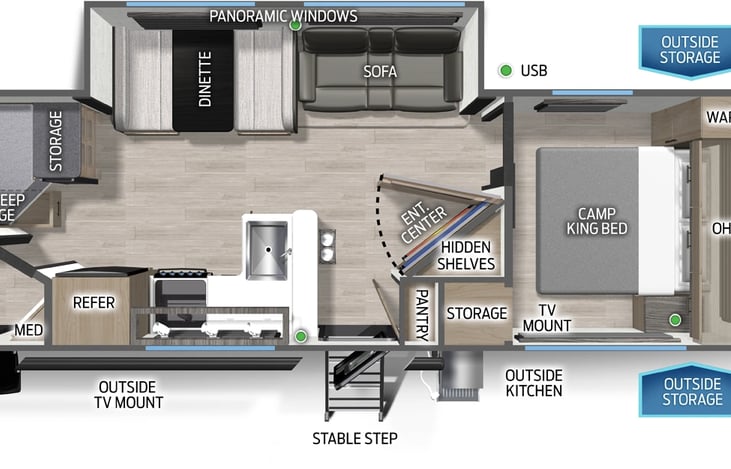 Mileage and generator hours that are included in a rental vary by listing. You can view the nightly mileage and generator hours that are included when renting this RV, as well as fees for excess mileage and generator usage, in the Rates and Availability section.