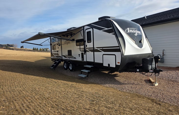 Welcome to the Black Hills! We hope that you enjoy your getaway. Whether you are from the area and close to home or exploring our area for the first time, we hope that you will feel right at home in our 2022 Grand Design Imagine 2800BH. This trailer is set up for families and friends alike. It comfortably sleeps 6–8 with a cozy queen bed, double bunks, and a fold-down dinette.