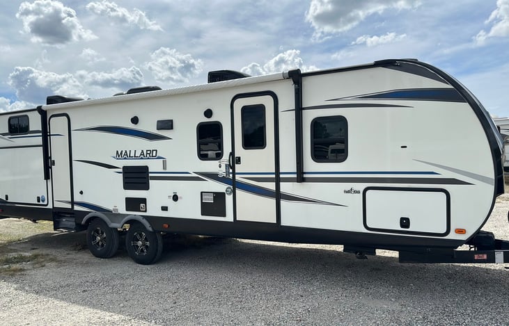 Bring the whole crew and make every campground feel like home! This 2021 Mallard M32 is the ultimate family bunkhouse — spacious, stylish, and ready to roll! A 35-foot, lightweight travel trailer designed for families, featuring a dual-slideout bunkhouse floorplan that sleeps up to 8 people.