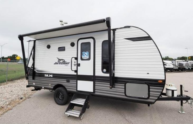 You and your two favorite people can take this Jay Flight SLX travel trailer out