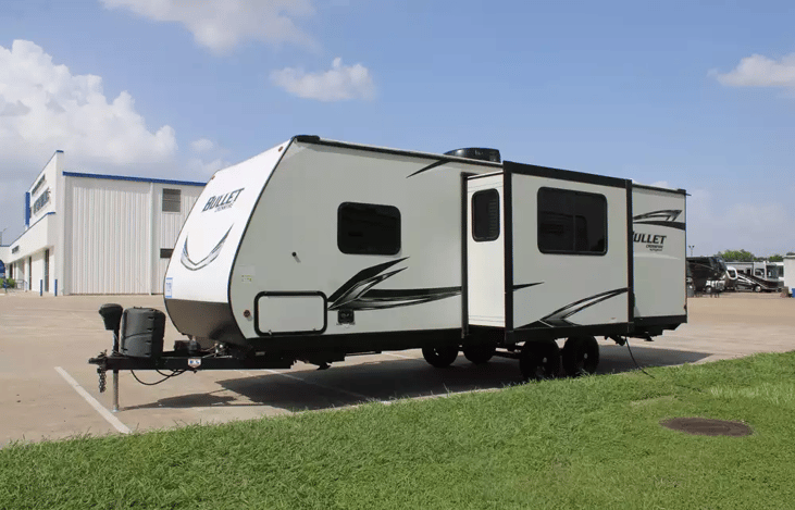 This Bullet Crossfire comfortably sleeps up to 8 and features a large slide-out that makes the interior feel surprisingly spacious.