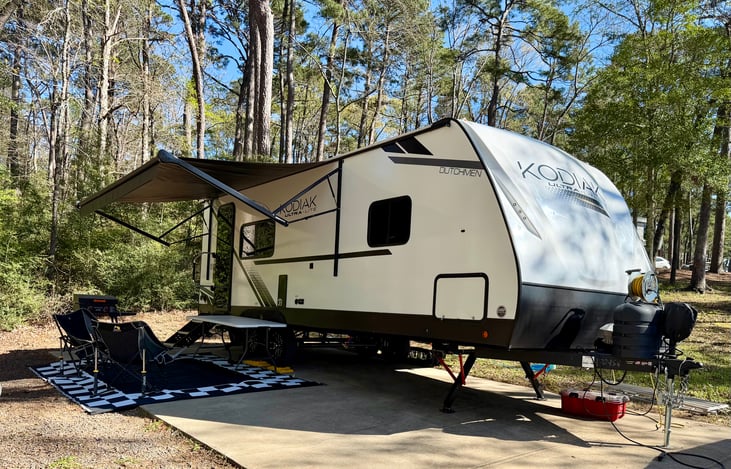 Your family will have a memorable camping experience in this 2025 Kodiak, comfortably sleeping up to 6 guests. It features a private queen bedroom, a jackknife sofa that converts to a bed for up to two people, and a private bunk room.