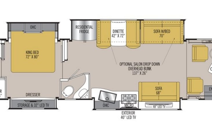 Mileage and generator hours that are included in a rental vary by listing. You can view the nightly mileage and generator hours that are included when renting this RV, as well as fees for excess mileage and generator usage, in the Rates and Availability section.