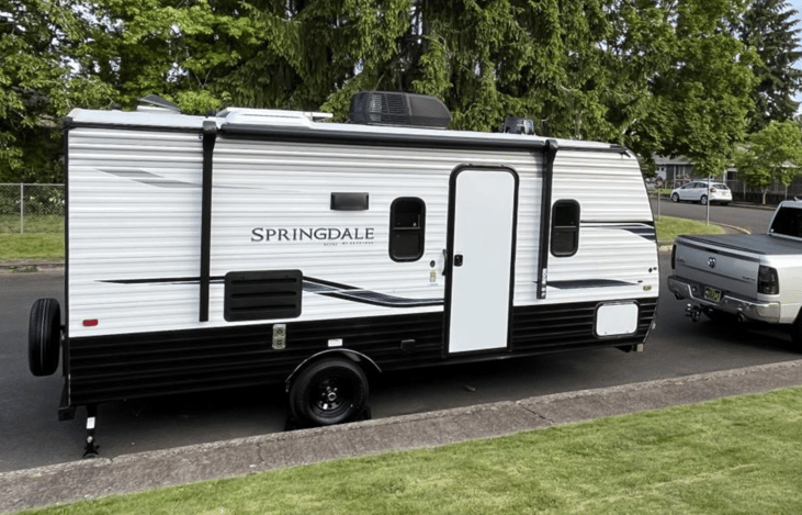 Clean, modern 2022 travel trailer available for weekly, monthly rental. Ideal for temporary housing, extra space for visiting friends and family or for the family who wants to experience a trailer during summer time.