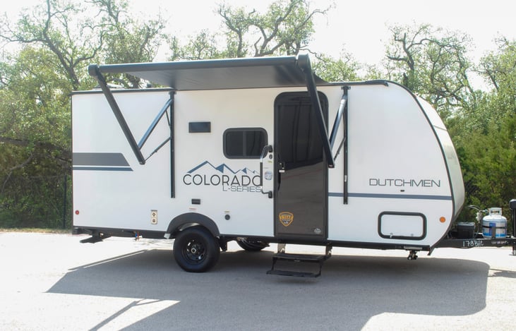 Get out and enjoy the outdoors with our comfortable and easy-to-tow camper. It’s a great setup for a weekend escape or a longer adventure around Central Texas.
