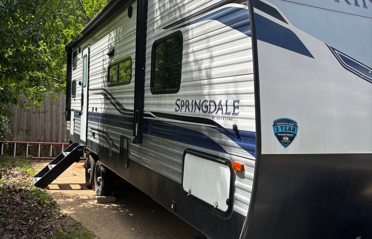Like brand new. Only used twice. Has 1 slide out for kitchen. Hirt and cold water for hook ups. Queen bed in enclosed room, fold down kitchen table for additional sleeping along with 2 bunk beds. Private bathroom. Very clean and comfortable. Outside has a mini refrigerator. Hook ups is a 30 amp.