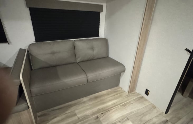 Take our cozy camper out for a good time. She comes with a screen and projector. A Bluetooth speaker chairs and small tables and a tv in the bedroom. As well as Tankless hot water heater. Delivery is not available at the moment. Currently working on that aspect.